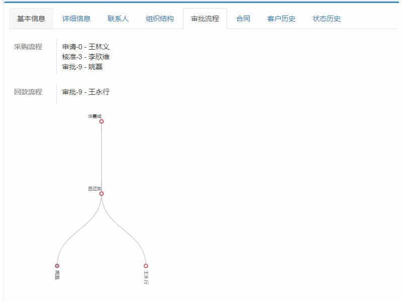 信息整合、联系人查询、组织架构的查看、审批流程的查询、状态历史的查看