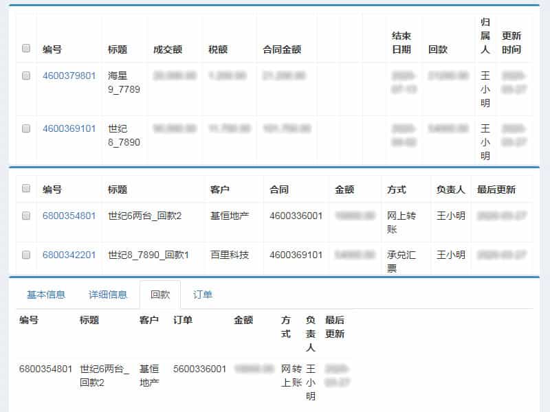 合同、回款的管理、查询、跟进,对项目及整体回款率了然于心